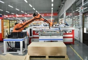 The whole line is composed of 13 robots, including 13 important processes such as automatic glass loading, typesetting, gluing, framing, solidfication loading etc.